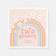 Retro inspirou dois guardanapos de segundo aniversário Groovy com arco-íris pastel estilo hippie e margaridas