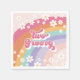 Dois guardanapos de segundo aniversário do Groovy Retro Rainbow com margaridas.