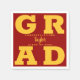 O FORMANDO em letras douradas amarelas em negrito preenche os cantos desses guardanapos de festa de formatura vermelho cardinal. Parabéns acima do nome do seu formando e da Classe de abaixo. CORRESPONDENDO a itens na nossa loja.