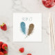 Guardanapo de penas castanhas e azuis para uma recepção de casamento ou pré-festa de casamento. Adicionar as primeiras iniciais sobre as penas. Perfeito para uma celebração boêmica ou do tema da natureza.
