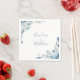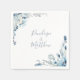 Flores de cor-de-água azulada e folhagem, guardanapos de papel personalizados. Recurso Napkins, bonito quadros de canto com linhas de texto modelo em um script azul empoeirado para nomes. Projetado para combinar com nossa Coleção Floral Elegante de Blue Watercolor.