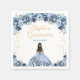 Este elegante e glamouroso guardanapo de aniversário da Quinceañera apresenta uma bela princesa com cabelo escuro num vestido de bola azul empoeirado. O texto combina o script manuscrito e as fontes sans serif modernas para um aspecto elegante e sofisticado. Os arranjos florais e o confete de ouro criam a mistura perfeita de rústicos e quicos. Gráficos por www.etsy.com/uk/shop/SunflowerDayLove