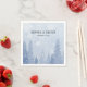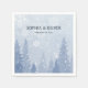 Este guardanapo de casamento tem uma cena sonhosa de aquarela de pinheiros e flocos de neve em tons luxuosos de azul e branco empoeirado. Um guardanapo elegante para casamentos no inverno num cenário de campo. Você pode personalizar este guardanapo indo para o menu personalizar. Este item faz parte de uma suíte de casamento correspondente que inclui um convite de casamento e outros bens essenciais.