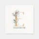 Florial da letra E monograma. A letra E, de textura castanha ouro, acentuada com folhas compostas de cor aquosa verde, flores e pó de ouro. Personalizado com o nome na fonte correspondente.