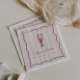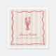 Nossas guardanapos de jantar para chá de noiva com lagosta de verão são perfeitos para sua celebração à beira-mar! O design caprichoso de inspiração costeira apresenta letras vermelhas e ilustrações em uma faixa de cabana em tom de pêssego claro. Um desenho de lagosta feito à mão está no topo de duas linhas de texto personalizado, tudo emoldurado por uma borda ondulada de vieira. Mostrado com "ela é um prêmio" e o nome da noiva.