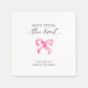 Guardanapos personalizados para despedida de solteira "Ela está amarrando o laço" coquette com laço rosa em aquarela simples e elegante.