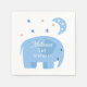 Festa de aniversário de criança ou primeiro aniversario de bebê Napkins com elefante engraçado, lua e estrelas em cor azul pastel para o garoto.