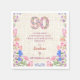 Elegant 90th birthday napkin design for her featuring soft pink and purple flowers, a feminine floral number, and a graceful milestone layout. A beautiful way to add a chic, coordinated touch to a ninetieth birthday table with stylish floral party decor. Enjoy!