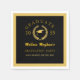 A modern, elegant and simple minimalist graduation party Napkins design features a golden and black background, include a golden laurel wreath and graduation gold cap icon and golden lettering stylish typography. Perfect for a graduation celebrations party. Customise with your own text , fonts and colors or remove and celebrate your graduation party.