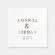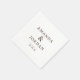 This elegant wedding napkin design features a clean, centered layout with large, uppercase serif typography for the names "Amanda & Jordan," creating a balanced and sophisticated look. The muted brown color palette against an off-white background adds a classic touch, while the simple composition emphasizes clarity and minimalism. Perfect for formal events, this design conveys a timeless aesthetic without any distracting elements, making it ideal for couples seeking refined and understated elegance on their special day.