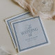 These elegant, old money style wedding napkins feature a dusty blue border with a thin white inner frame and a lighter blue center. There is a mix of classic text and modern calligraphy for a classy and minimalist design perfect for your timeless, formal wedding.