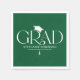 Celebrate your graduate with refined, modern style using these elegant graduation party napkins. Set against a stylish green background, the design features the word “GRAD” in a modern serif typeface, with a stylish graduation cap icon positioned above the “R.” The end of the “R” flows seamlessly into a dangling tassel that runs through the graduate’s name, school, and class year for a cohesive, high-end look.
