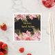 Pretty birthday paper napkin with pink flowers and gold foliage. The words can be changed to suit your own details or requirements. Would be perfect for a sweet sixteen birthday party.