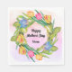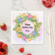 © Socialite Designs & LICENCORS. These paper napkins bloom with a vibrant watercolor tulip wreath, creating a cheerful and elegant focal point for any spring celebration. The hand‑painted petals wrap into a soft circular frame, evoking the freshness of garden mornings and the warmth of seasonal gatherings. Centered within the wreath is a faux gold‑foil–look text banner, offering a customizable space for names, event titles, or a heartfelt message. Perfect for Mother’s Day brunches, spring birthdays, garden parties, or tulip‑themed events, these napkins add a touch of artistry and charm to your table while giving guests a keepsake‑worthy detail to admire.