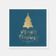 Elegante Papel de Natal Napkins apresentando uma Árvore de Natal Faux Gold Foil em um fundo azul com uma feliz tipografia de ouro cintilante "Feliz Natal" e um nome e data personalizados que você pode alterar ou apagar do menu. Uma maneira elegante e bonita de decorar sua casa com esta temporada de férias.
