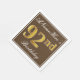 Este simples e elegante design de guardanapo de papel apresenta uma mensagem como "ANameHere's 92nd Birthday" (com o "92º" a ter uma falsa coloração em forma de ouro) dentro de uma área quadrada de cor castanha com um contorno de fronteira simples. O nome está em um texto semelhante a script de cor branca e pode ser personalizado. Napkins como estes poderia talvez ser usado numa festa de aniversário para alguém que comemora seu nonagésimo segundo aniversário. [~Z0000139]