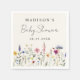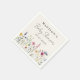 Núcleos de chás de fraldas florais elegantes que apresentam uma borda inferior de flores silvestres e folhagem de cor d'água em tons de rosa, amarelo, roxo, azul e verde sobre um fundo creme. Personalize os guardanapos de chá de fraldas de flor silvestre com o nome da futura mãe e a data. Os guardanapos personalizados de flor silvestre são perfeitos para chás de fraldas de primavera e verão.