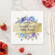 Bem-vindos convidados ao seu chá de fraldas por uma menina ou um bebê e oferecer-lhes bebidas com este lindo e elegante obrigado chá de fraldas que guardanapos. Estes guardanapos para chá de fraldas apresentam uma etiqueta de ouro falso bonito cercada por flores pintadas manualmente a aquarela em roxo, azul e amarelo. Uma boa escolha neutra em termos de gênero para o chá de fraldas, o bebê aspersor, ou um gênero de bebê revela.