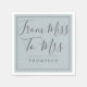De Senhorita para Senhora. Guardanapo de papel em azul poeirado é ótimo para adicionar um toque personalizado ao seu chá de noiva orgulhosamente anunciando "De Senhorita para Senhora + Sobrenome" em tipografia caligráfica chique e elegante. Projetado para combinar com nossa Coleção "Floral Bege". Se você precisar de outra cor para combinar com o tema do seu chá de noiva, por favor nos avise, entre em contato conosco usando o botão abaixo.