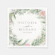 Bonitos guardanapos de casamento com cor-de-água floral rosa eucalipto e folhas de ouro.