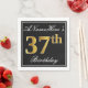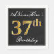 Este simples e elegante design de guardanapo de papel apresenta uma mensagem como "ANameHere's 37th Birthday" (com o "37º" a ter uma aparência falsa de cor dourada) dentro de uma área quadrada de cor preta com um contorno simples da fronteira. O nome está em um texto semelhante a script de cor branca e pode ser personalizado. Napkins como estes poderia talvez ser usado numa festa de aniversário para alguém que comemora seus trinta e sete anos. [~Z0000136]