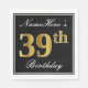 Guardanapo De Papel Elegante, Faux Dourado 39º Aniversário + Nome Pers