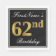 Guardanapo De Papel Elegante, Faux Dourado 62º Aniversário + Nome Pers