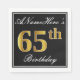 Este simples e elegante design de guardanapo de papel apresenta uma mensagem como "ANameHere's 65th Birthday" (com o "65º" a ter uma coloração falsa em forma de ouro) dentro de uma área quadrada de cor preta com um contorno de fronteira simples. O nome está em um texto semelhante a script de cor branca e pode ser personalizado. Napkins como estes poderia talvez ser usado numa festa de aniversário para alguém que comemora seu sexagésimo quinto aniversário. [~Z0000136]