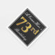 Este simples e elegante design de guardanapo de papel apresenta uma mensagem como "ANameHere's 73rd Birthday" (com o "73º" a ter uma coloração falsa em forma de ouro) dentro de uma área quadrada de cor preta com um contorno simples da fronteira. O nome está em um texto semelhante a script de cor branca e pode ser personalizado. Napkins como estes poderia talvez ser usado numa festa de aniversário para alguém que comemora seus setenta e três anos. [~Z0000136]