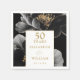 Elegantes guardanapos de papel preto e branco com flores para aniversário de casamento de 50 anos podem ser personalizados com suas informações em tipografia moderna. Criado por Thisisnotme©