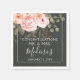 Aglomerado de rosas cor de rosa românticas e sem tempo com sotaques de coral sobre um dramático fundo de carvão - muito chique! Este lindo desenho de casamento apresenta elementos florais e botânicos na moda com um visual fresco e moderno.