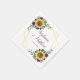 Estes guardanapos de casamento apresentam um design floral de aquarela moderno com girassóis, flores roxas e falsos quadros geométricos de ouro. Personalize-os com seus nomes e data de casamento. Estes guardanapos fazem parte de uma coleção que inclui uma gama de cheios de artigos de papelaria e de noivas. Visite nossa loja para ver o intervalo de cheios.
