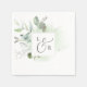 Estes elegantes guardanapos de papel de monograma são perfeitos para uma simples recepção de casamento. O moderno elegante design apresenta uma disposição botânica natural de eucalipto, folhas e plantas com um sutil sotaque de hortelã verde-aquarela. Personalize os guardanapos com os nomes da noiva e do noivo, e a data do casamento. Estes guardanapos podem ser usados para recepção de casamento, janto de ensaio, festa de noivado e muito mais!
