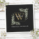 Guardanapo De Papel Elegante Monograma Preto Dourado Folhagem de Eucal