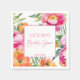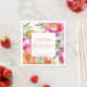 Modelo de guardanapos elegantes com peônias laranja rosa magenta para decoração de chá de noiva personalizada, decoração vibrante e moderna em cores fortes e tipografia casual