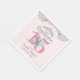 Quinceanera, bonito guardanapos cor-de-rosa, cor-de-rosa, com uma princesa tiara, rosas e saltos altos, com uma borda prateada de folha cardíaca no topo do convite. Um belo aniversário de 15 no estilo chic.