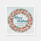 Guardanapo De Papel Elegante Red Wreath Holly Berries Dourado Xmas