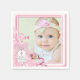 Rosa elegante e doce rosa e etiqueta de arco bonito com fraldas coloridas de bebê. Você pode personalizar este adorável guardanapo batizante de fotos com sua foto e texto no estilo de fonte e cor de sua escolha.