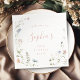 Um delicado e elegante design de flores silvestres de aquarela com um guião moderno. Paletas de pastel de cor-de-rosa pincel suave, esbranquiçada, bege, azul poeirento e verde botânico, simples e romântico. Excelente para a festa de aniversário rústica moderna, festa de jardim boho country na primavera e no verão. Veja todas as peças correspondentes na coleção.