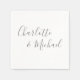 Com nomes em estilo de assinatura, esses guardanapos elegantes cinza e branco podem ser personalizados com seus nomes em letras cinza chiques. Projetado por Thisisnotme©