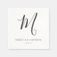 Este guardanapo de casamento oferece um design simples, mas elegante. Oferece um fundo branco com um monograma preto escrito à mão e texto limpo para os nomes da noiva e do noivo e sua data de casamento.