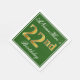 Este simples e elegante design de guardanapo de papel apresenta uma mensagem como "ANameHere's 22nd Birthday" (com o "22º" com uma falsa coloração em forma de ouro) dentro de uma área quadrada de cor verde com um contorno simples de fronteira. O nome está em um texto semelhante a script de cor branca e pode ser personalizado. Napkins como estes poderia talvez ser usado numa festa de aniversário para alguém que comemora seu vigésimo segundo aniversário. [~Z0000137]
