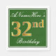 Este simples e elegante design de guardanapo de papel apresenta uma mensagem como "ANameHere's 32nd Birthday" (com o "32º" a ter uma falsa coloração em forma de ouro) dentro de uma área quadrada de cor verde com um contorno simples da fronteira. O nome está em um texto semelhante a script de cor branca e pode ser personalizado. Napkins como estes poderia talvez ser usado numa festa de aniversário para alguém que comemora seus trinta e dois anos. [~Z0000137]