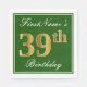 Guardanapo De Papel Elegante Verde, Faux Dourado 39º Aniversário + Nom