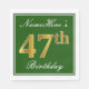 Guardanapo De Papel Elegante Verde, Faux Dourado 47º Aniversário + Nom