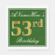 Este simples e elegante design de guardanapo de papel apresenta uma mensagem como "ANameHere's 53rd Birthday" (com o "53º" com uma falsa coloração em forma de ouro) dentro de uma área quadrada de cor verde com um contorno de fronteira simples. O nome está em um texto semelhante a script de cor branca e pode ser personalizado. Napkins como estes poderia talvez ser usado numa festa de aniversário para alguém que comemora seus cinquenta e três anos. [~Z0000137]