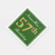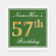 Este simples e elegante design de guardanapo de papel apresenta uma mensagem como "57.º Aniversário do NomeAqui" (com o "57.º" a ter uma coloração falsa em ouro) dentro de uma área quadrada de cor verde, com um contorno de fronteira simples. O nome está em um texto semelhante a script de cor branca e pode ser personalizado. Napkins como estes poderia talvez ser usado numa festa de aniversário para alguém que comemora seus cinquenta e sete anos. [~Z0000137]
