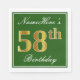 Guardanapo De Papel Elegante Verde, Faux Dourado 58º Aniversário + Nom