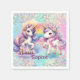 Adicione um toque de magia à sua festa com estes guardanapos unicórnios encantadores! Apresentando dois adoráveis unicórnios, um arco-íris radiante e sotaques brilhantes, esses guardanapos trarão encanto certeiro para qualquer celebração com tema unicórnio. Perfeito para manter as mãos limpas enquanto adiciona um elemento decorativo divertido à mesa. Personalize-os com o nome do seu filho para um toque verdadeiramente mágico. Estes guardanapos de cor pastel são ideais para bolo, salgadinhos ou qualquer banquete de aniversário!