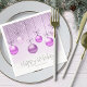 Este bonito design de guardanapo de papel tem um padrão de Enfeites de natal pendurados em tons de roxo. O fundo é um sutil padrão gradiente de árvores de Natal estilizadas. Procure ID251 para ver outras opções de cores e produtos adicionais com este design.